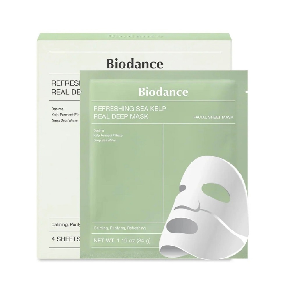 Biodance Refreshing Sea Kelp Real Deep Mask – освіжаюча гідрогелева маска з морськими водоростями, для глибокого відновлення і зволоження шкіри. Маска збагачена натуральними ферментованими морськими водоростями, що мають потужні антиоксидантні властивості. Швидко заспокоює і оживляє шкіру, роблячи її оксамитовою і готуючи до нанесення макіяжу. Маска допомагає зняти стрес, зменшити пошкодження, запобігає появі недосконалостей і захищає шкіру від зовнішніх впливів. Завдяки високій концентрації антиоксидантів і зволожувальних компонентів, вона зменшує зморшки та сухість, надаючи шкірі молодого та сяючого вигляду. Маска ідеально підходить для людей, які страждають від подразнень, почервоніння і стоншування шкіри, а також потребують інтенсивного відновлення і зволоження. Гідрогелева маска стає прозорою в міру того, як активні компоненти поглинаються шкірою. Маску необхідно тримати на шкірі мінімум 3-4 години. Для найкращого результату протримайте маску всю ніч! Завдяки особливій формулі гідрогелю маска чудово прилягає до шкіри, не сповзає, не залишає слідів на подушці.