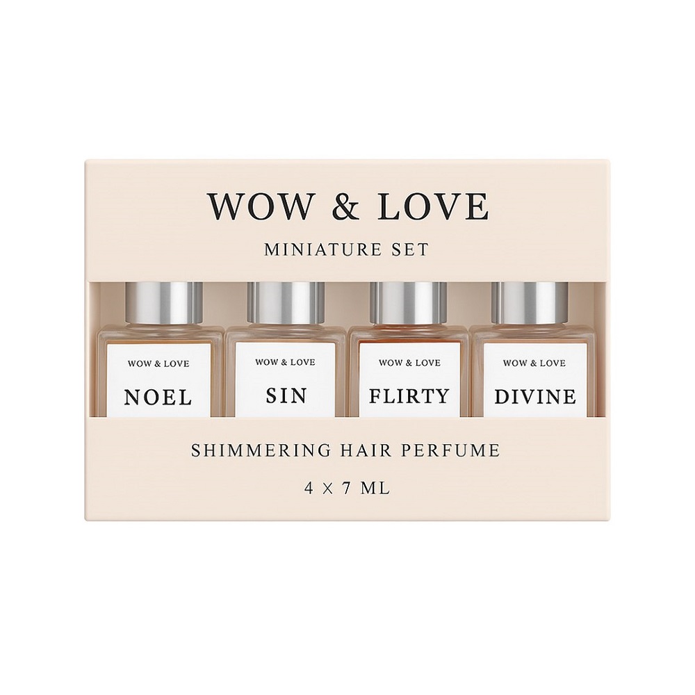 WOW & LOVE Mini Set — це набір з 4 шимерних парфум-блисків для волосся, які поєднують у собі аромат і легке сяйво. Кожен спрей надає волоссю блиск, делікатно доглядає за ним і дарує стійкий парфумований шлейф.
